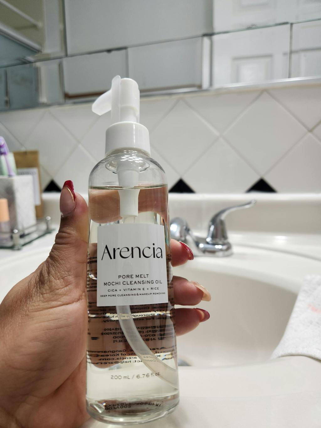 Arencia Pore Melt Mochi Cleansing Oil, 200ml (6.76 fl oz) is a gentle, non-comedogenic oil cleanser that effortlessly dissolves makeup, excess sebum, and pore impurities. Powered by plant-based oils and calming extracts, this silky formula emulsifies upon contact with water to leave skin clean, soft, and perfectly balanced—without any residue or stripping.